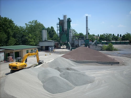 Nell'impianto di Peschiera Borromeo è concentrata la produzione di conclomerati bituminosi, aggregati riciclati e il recupero e trattamento macerie.